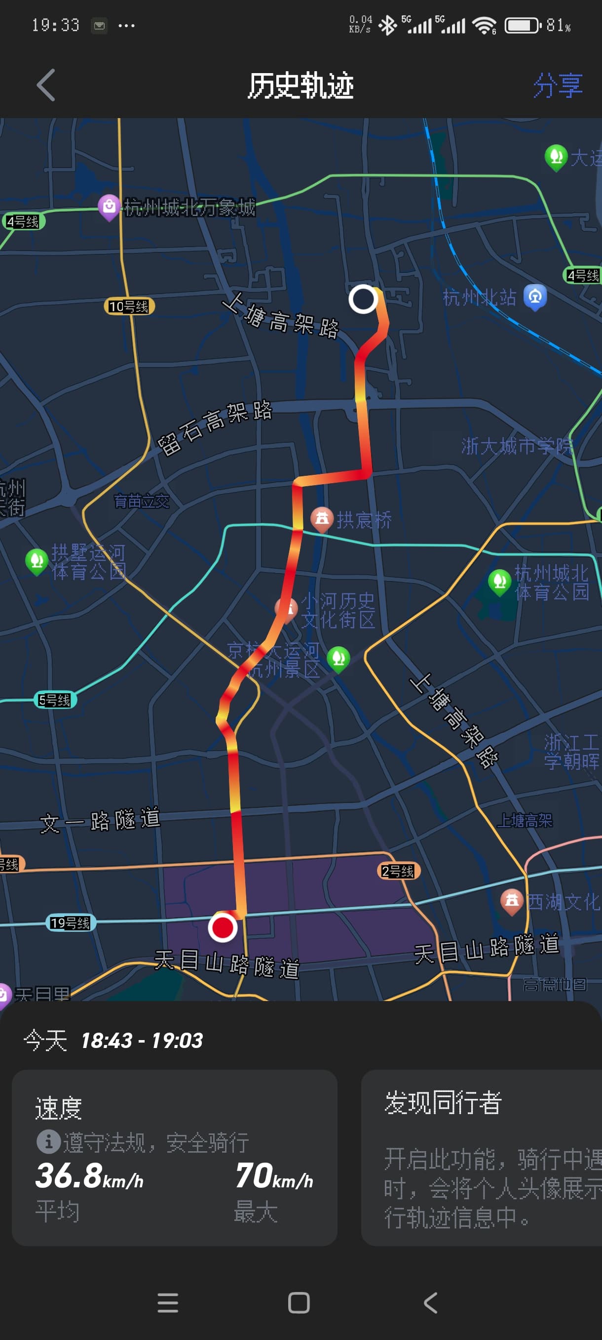 以前在杭州主城区,总是把电动自行车骑到 100 KM/H。但最近发现,把自行车满把的速度调到 70 KM/H,骑的时候才最舒服,因为除了等红灯,全程都不需要减速。