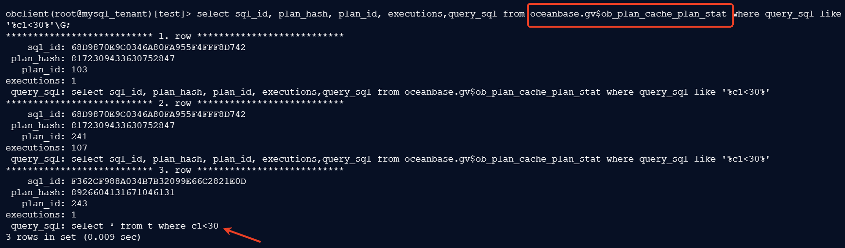 GV$OB_PLAN_CACHE_PLAN_STAT:提供每条执行计划的详细统计,可用于判断哪些计划被频繁使用或已失效。