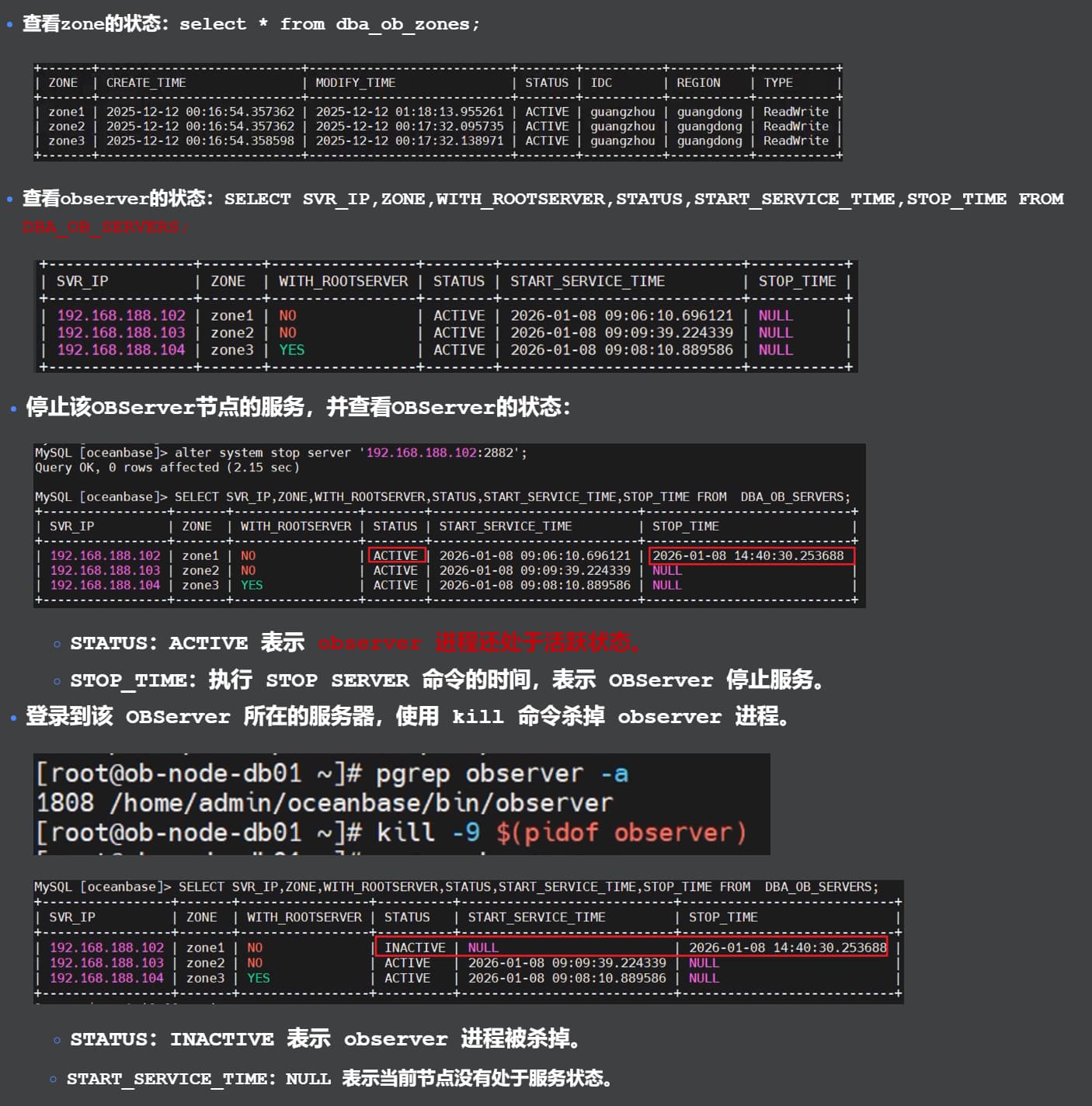 因为这里只是停掉了节点,observer进程还在,若想要active发生变化,应该kill -9