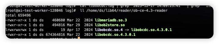 先把这个目录下的文件备份,再把rpm包解压的 ./home/admin/oceanbase/lib64下的文件复制到 oms容器的/home/ds/lib64/reader/ob-ce-4.3-reader 目录下就行