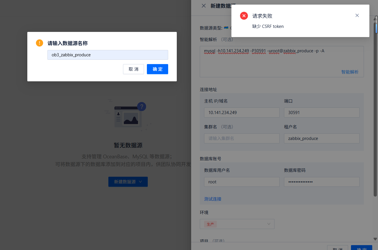 您好,我在k8s中部署的odc,web界面进行创建数据源等操作报错 缺少 CSRF token,请问是什么问题所导致,odc版本4.4.0