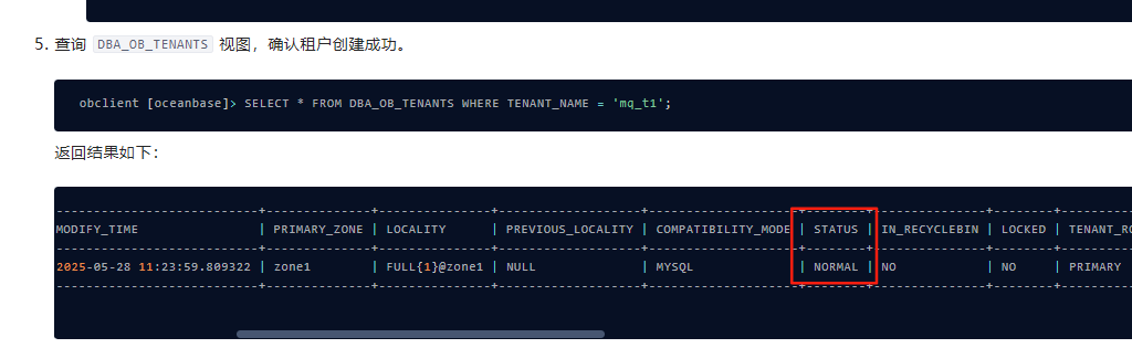 登录 sys租户 select * from oceanbase.dba_ob_tenants; 截图看下, 这表 有租户的状态