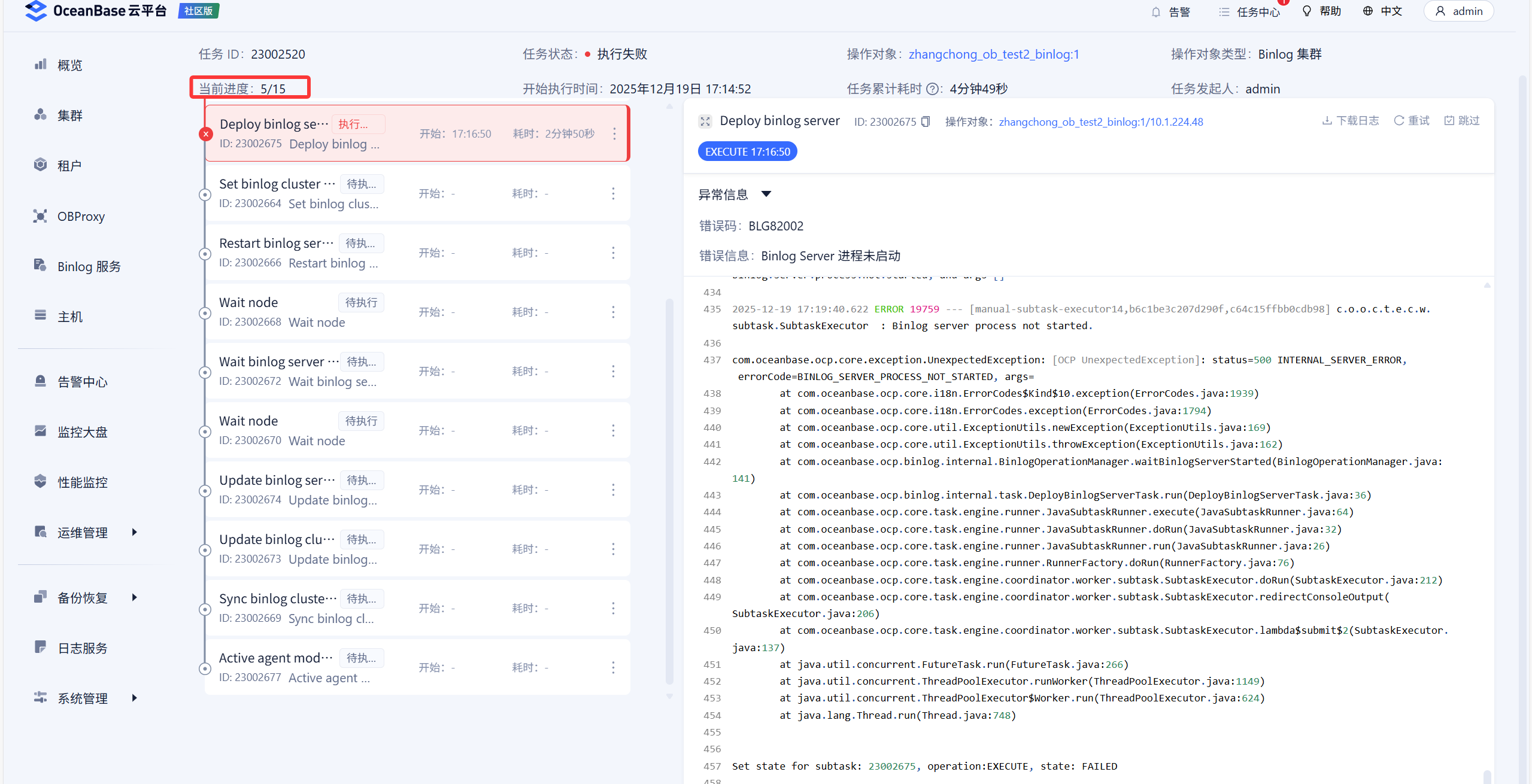 【问题描述】OCP部署binlog服务失败