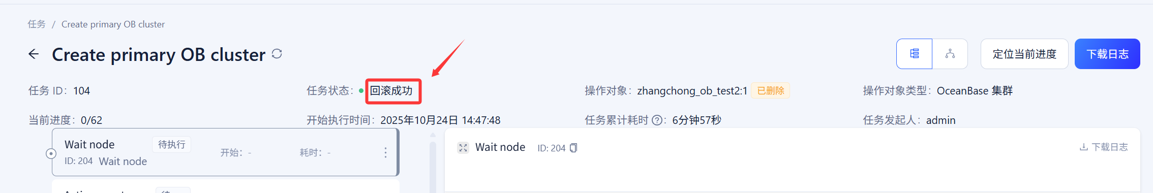 任务中心的创建集群任务是否有执行回退操作