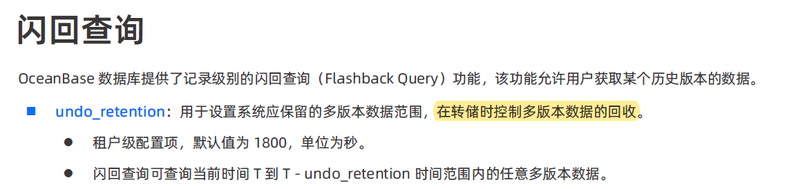 undo_retention时间范围的版本为“可清理”; - 在后续的转储或大合并(major freeze)中,不再将其写入新的 SSTable,实现逻辑上的“回收”。
