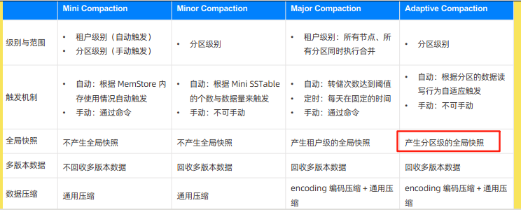 PPT 77页:基于转储的速度考虑,转储时不会对多版本数据进行回收处理,不做encoding 编码压缩,但会使用通用压缩算法对数据压缩存储。