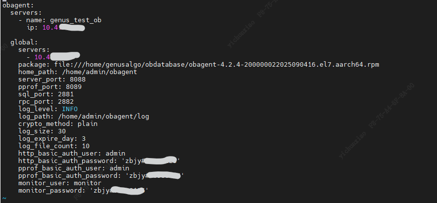 【问题描述】测试环境已经安装过ob4.2.5单机版,最近因为想监控数据库,所以单独用rpm安装了obd和obagent,在配置obagent的时候就卡在[WARN] Use centos 8 remote mirror repository for kylin V10,配置文件是参考模板配置的,deploy时就提示global’s servers list is empty,后来自己加了一个ip通过