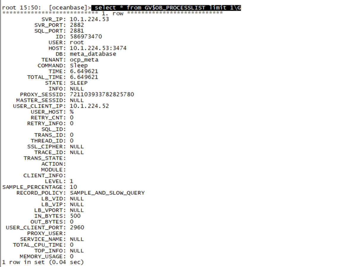 | 3221707143 | root | 192.168.207.18:47812 | oceanbase | Query | 0 | ACTIVE | SHOW processlist |