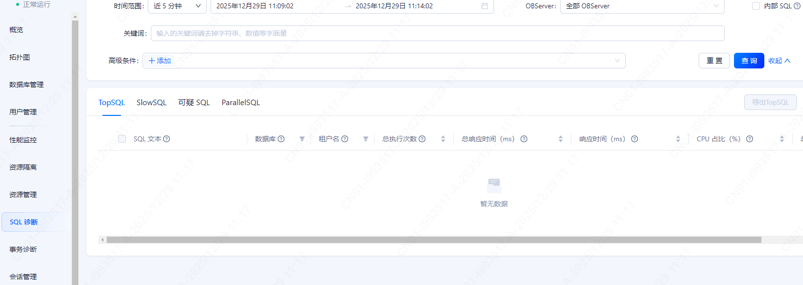 sql 诊断 没有数据,但是我在业务库查询给gv$ob_sql_audit 是有纪录的。