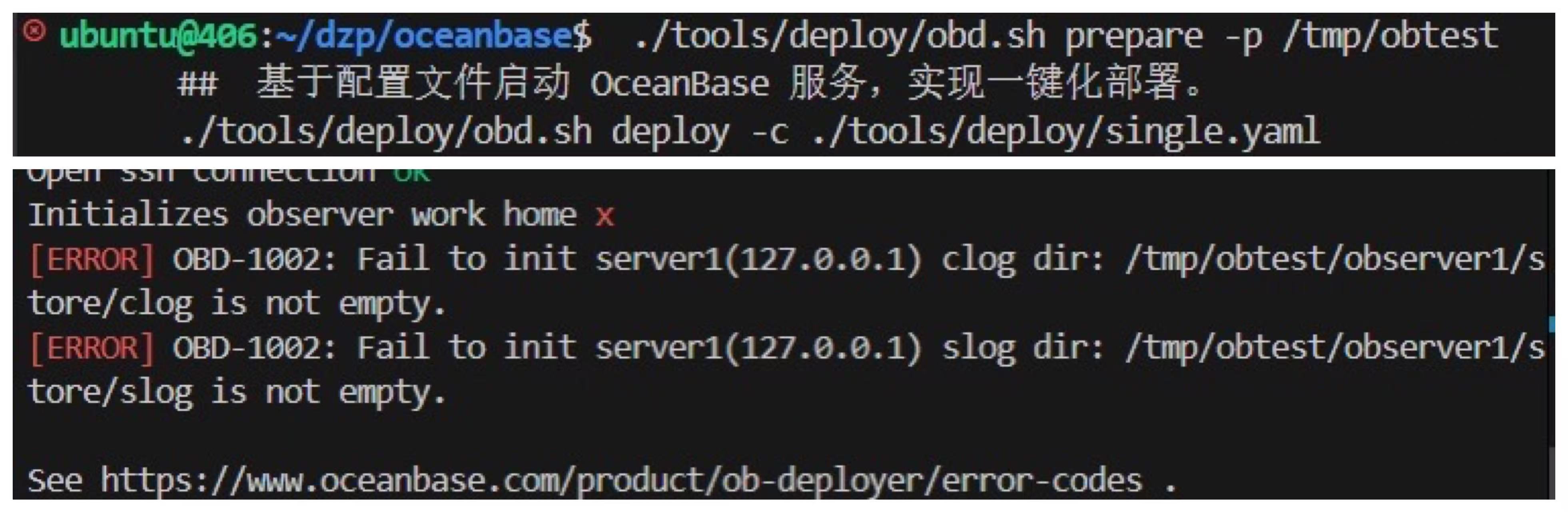 问题描述:大家好!我在运行oceanbase源码启动服务的时候遇到了如上图2所示的问题,图1是我输入的启动命令。我根据1002错误码这个提示查看了官方文档,但是按照官方文档的做法操作之后还是报了一摸一样的错误。