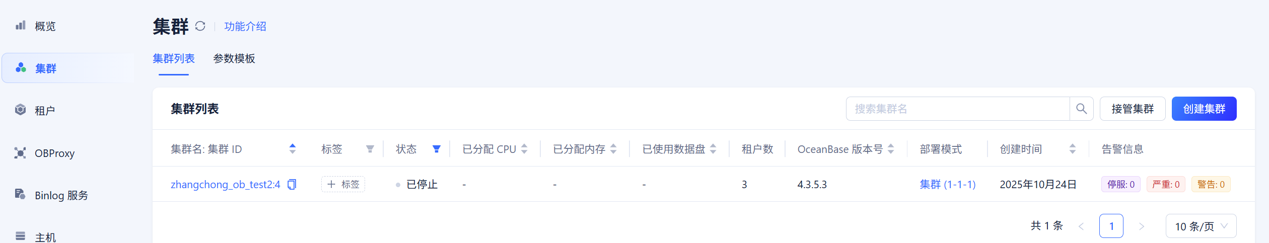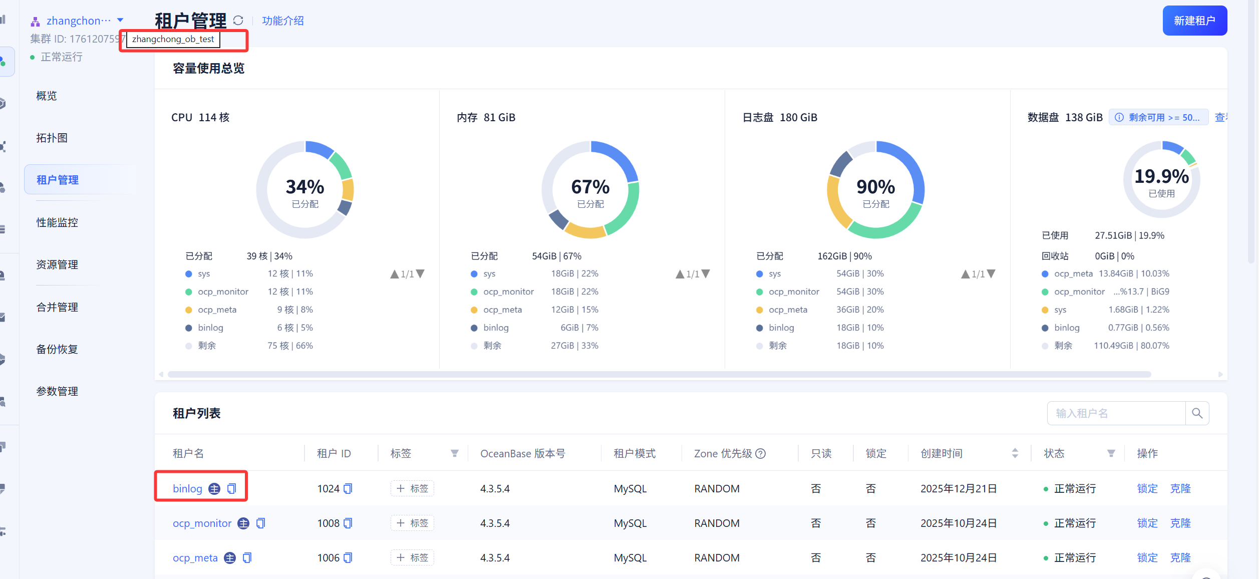 好的,集群先故障了,故障集群的租户还存在binlog服务,按标准流程是不允许直接删除这个集群的,停止binlog服务失败,看日志是binlog状态已经不对了,已经是stop状态,需要修改元数据,高版本的OCP修复了binlog的一些bug,建议升级到OCP4.4.0