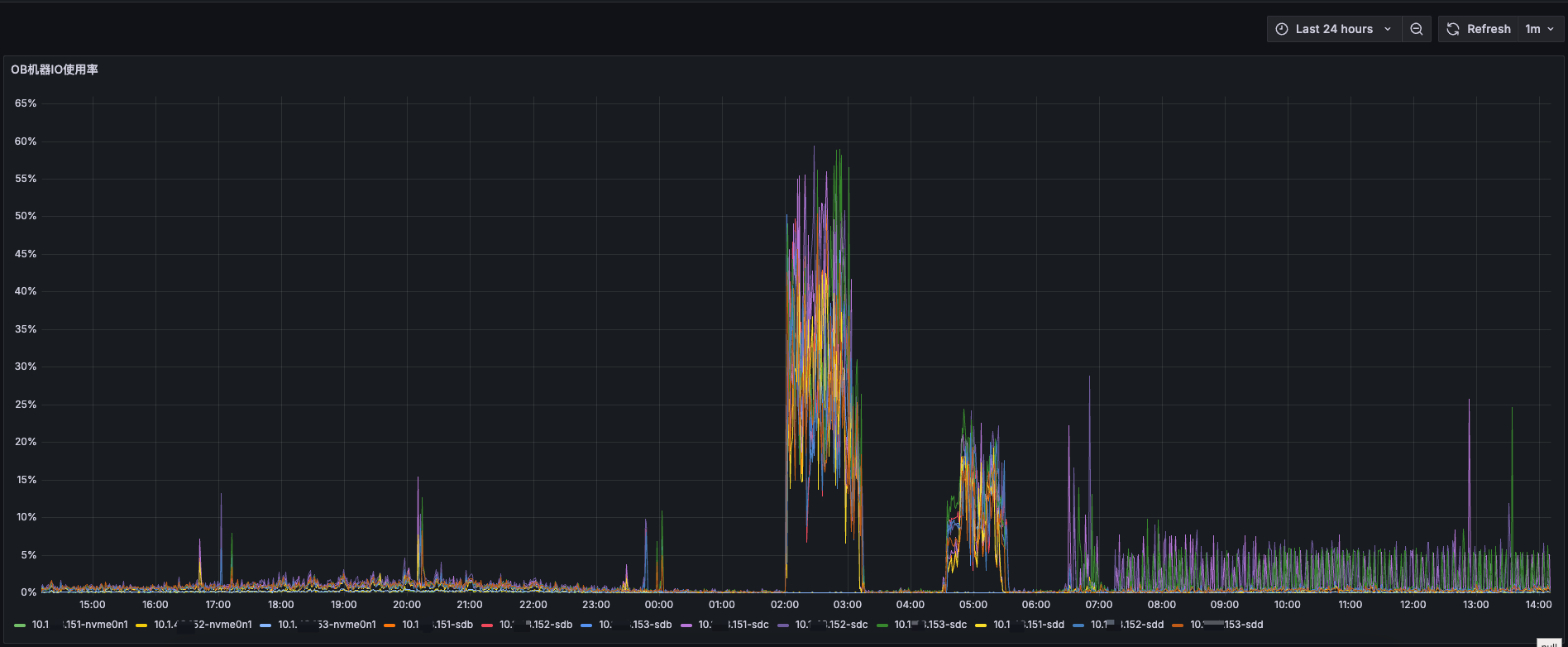 不正常,我们白天没有业务高峰,而且和前一天的对比,两个问号的地方明显比之前的io高很多