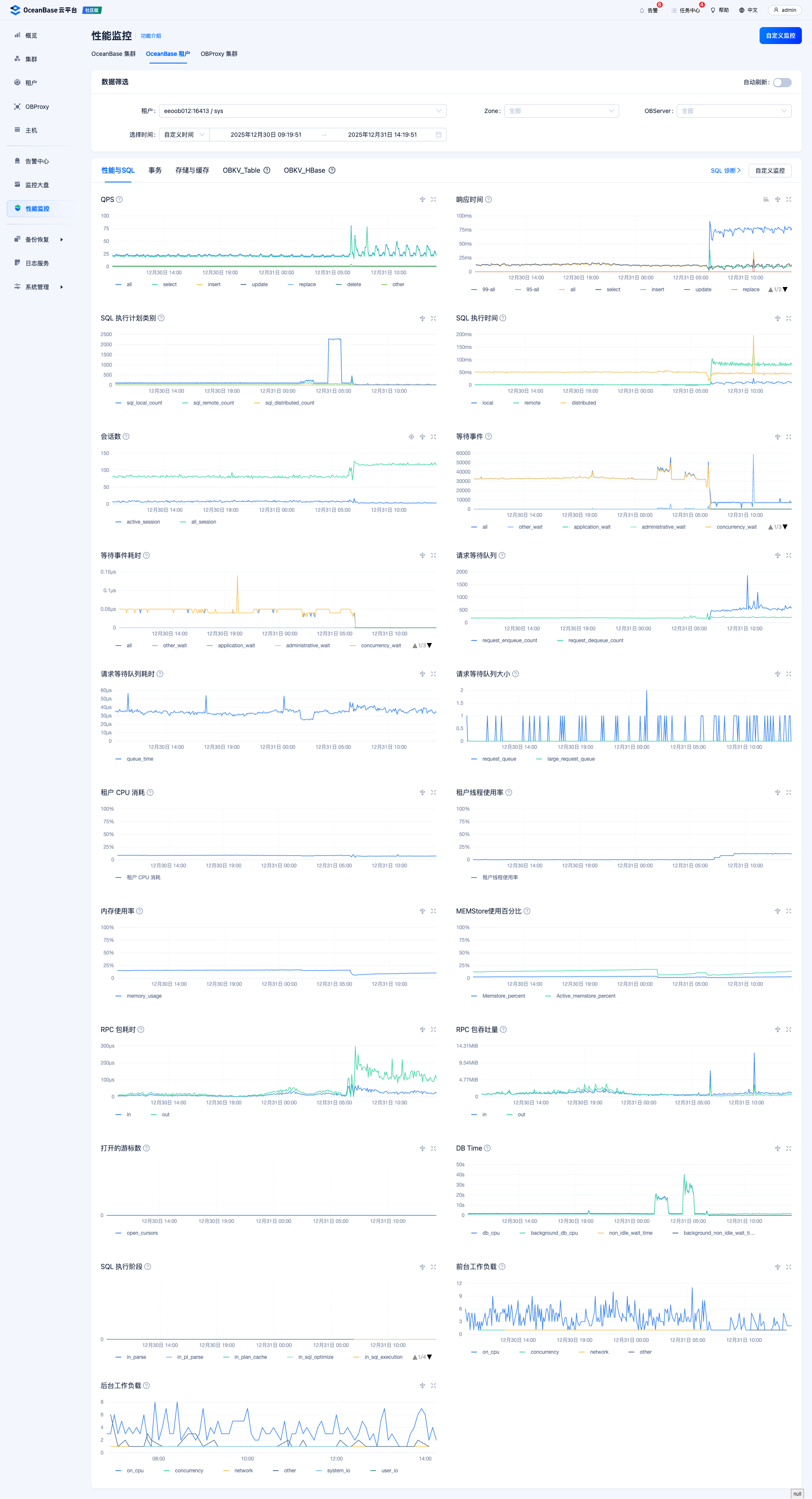从ocp的截图sys租户 看这个时间 QPS是增加的 sql执行时间也是增加了的