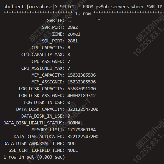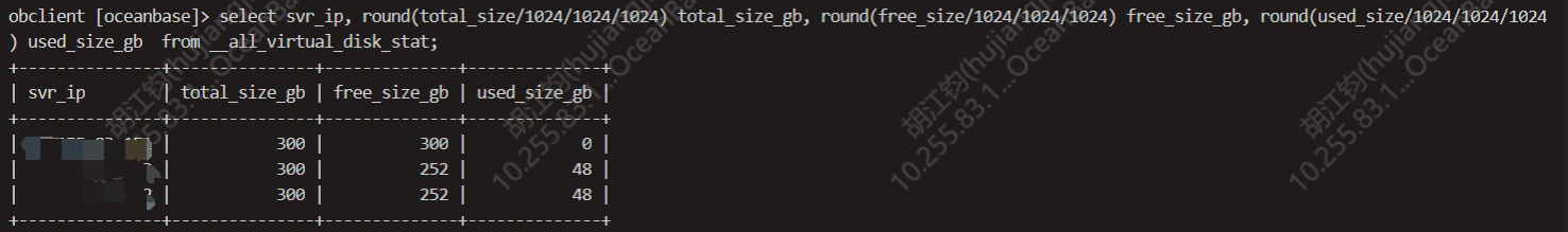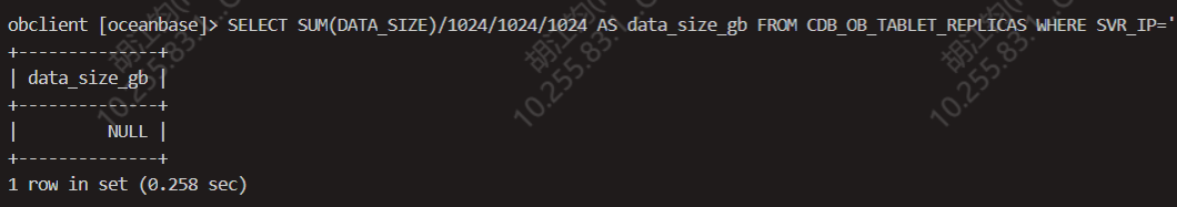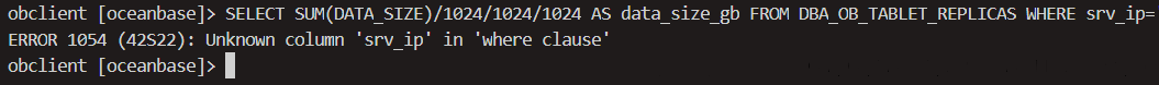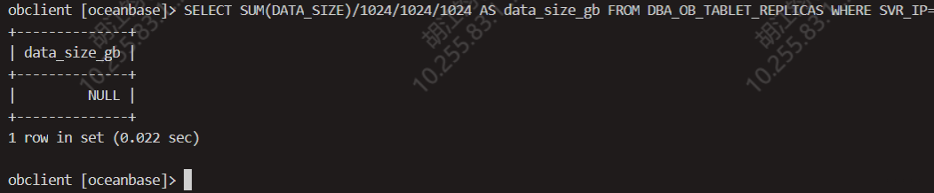 select sum(DATA_SIZE)/1024/1024/1024 DBA_OB_TABLET_REPLICAS where SVR_IP =’’;