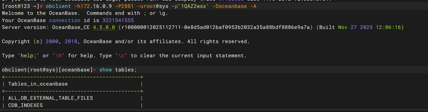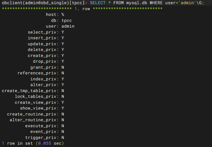 用黑屏分别登录到普通租户和sys租户,分别执行 show grants for root; 看看两种租户下的root用户拥有的权限是否一致?