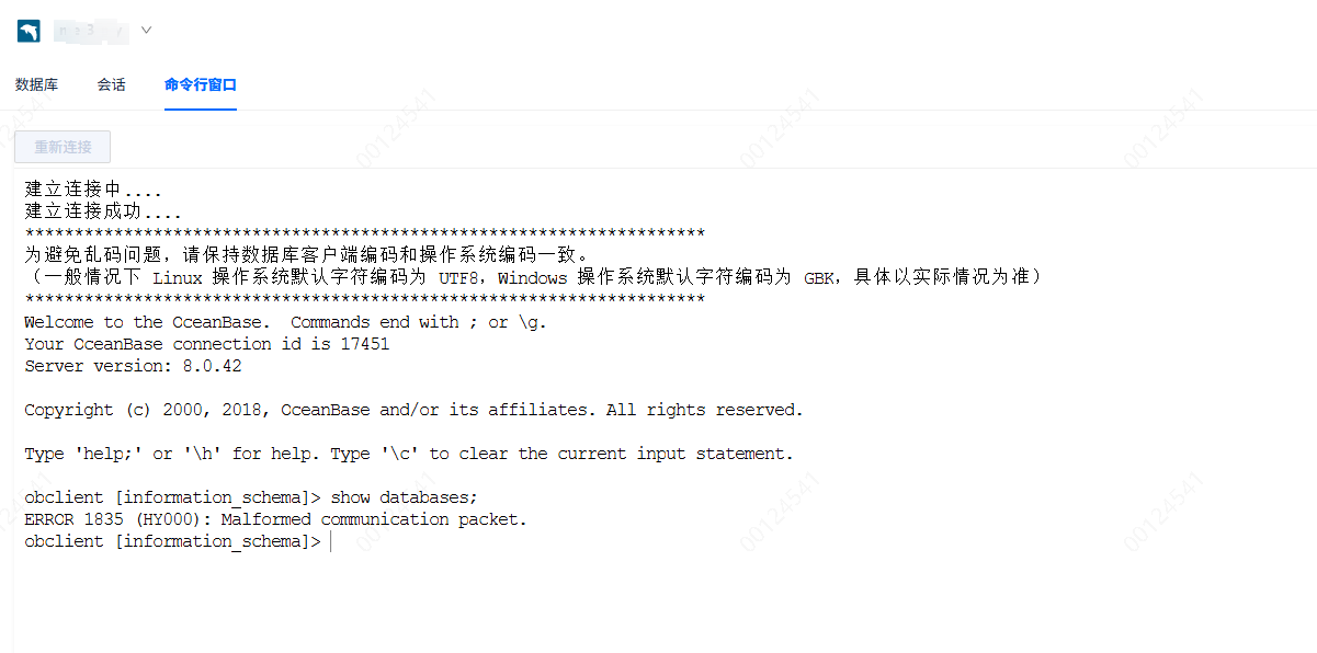 这个版的ODC连接mysql8.0.42命令报错,连接mysql5.7.28是正常的,请确认下。