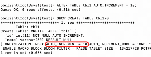 【问题描述】oceanbase 修改表的AUTO_INCREMENT 值后,ALTER TABLE test AUTO_INCREMENT = 2014478;