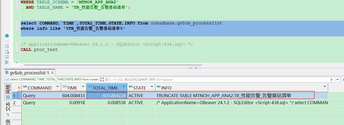 执行的时候看下gv$ob_processlist 看下PL执行到哪里了