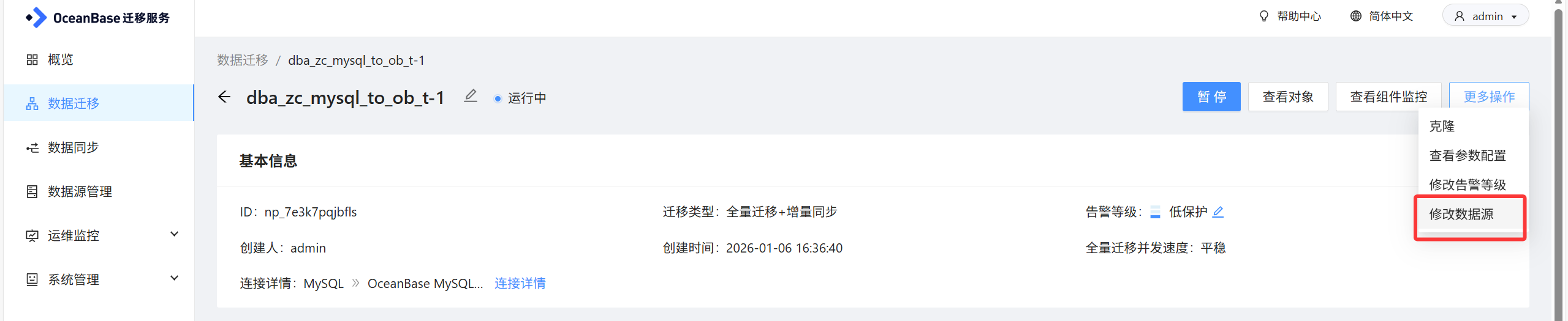 OMS mysql to ob , 上游数据源A节点宕机,如何不丢数切换上游同步源为B节点 (节点A、节点B 为主从关系)? 是不是 停止同步任务,再修改数据源就可以吗?