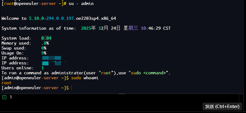 [admin@openeuler-server ~]$ sudo whoami