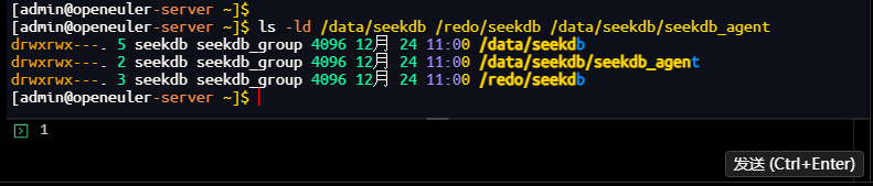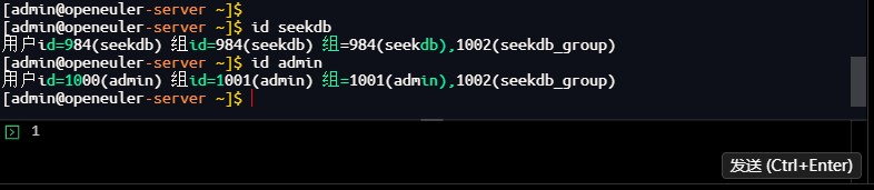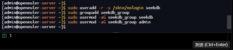 [admin@openeuler-server ~]$ sudo usermod -aG seekdb_group admin