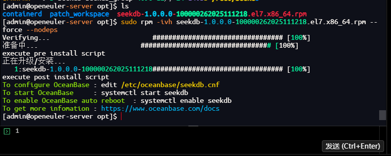 ✅ 适配环境:openEuler + admin用户 + SeekDB v1.0.0