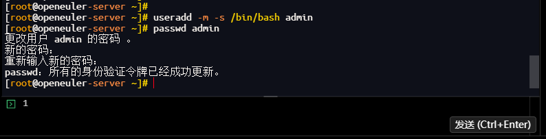 [root@openeuler-server ~]# useradd -m -s /bin/bash admin