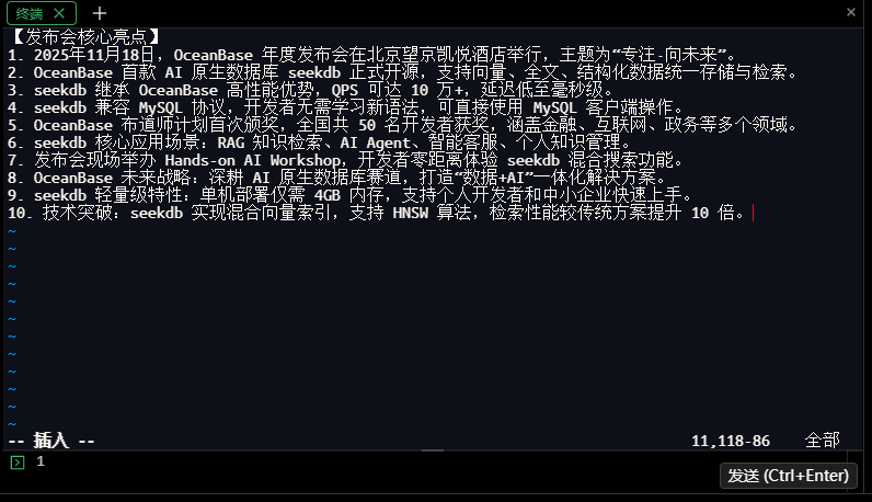 已插入记忆:2. OceanBase 首款 AI 原生数据库 seekd...