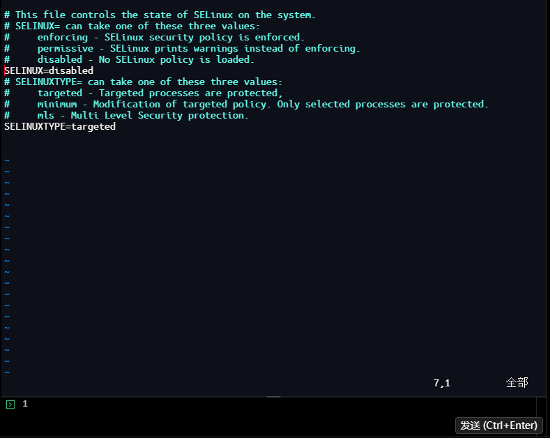 # 编辑SELinux配置文件