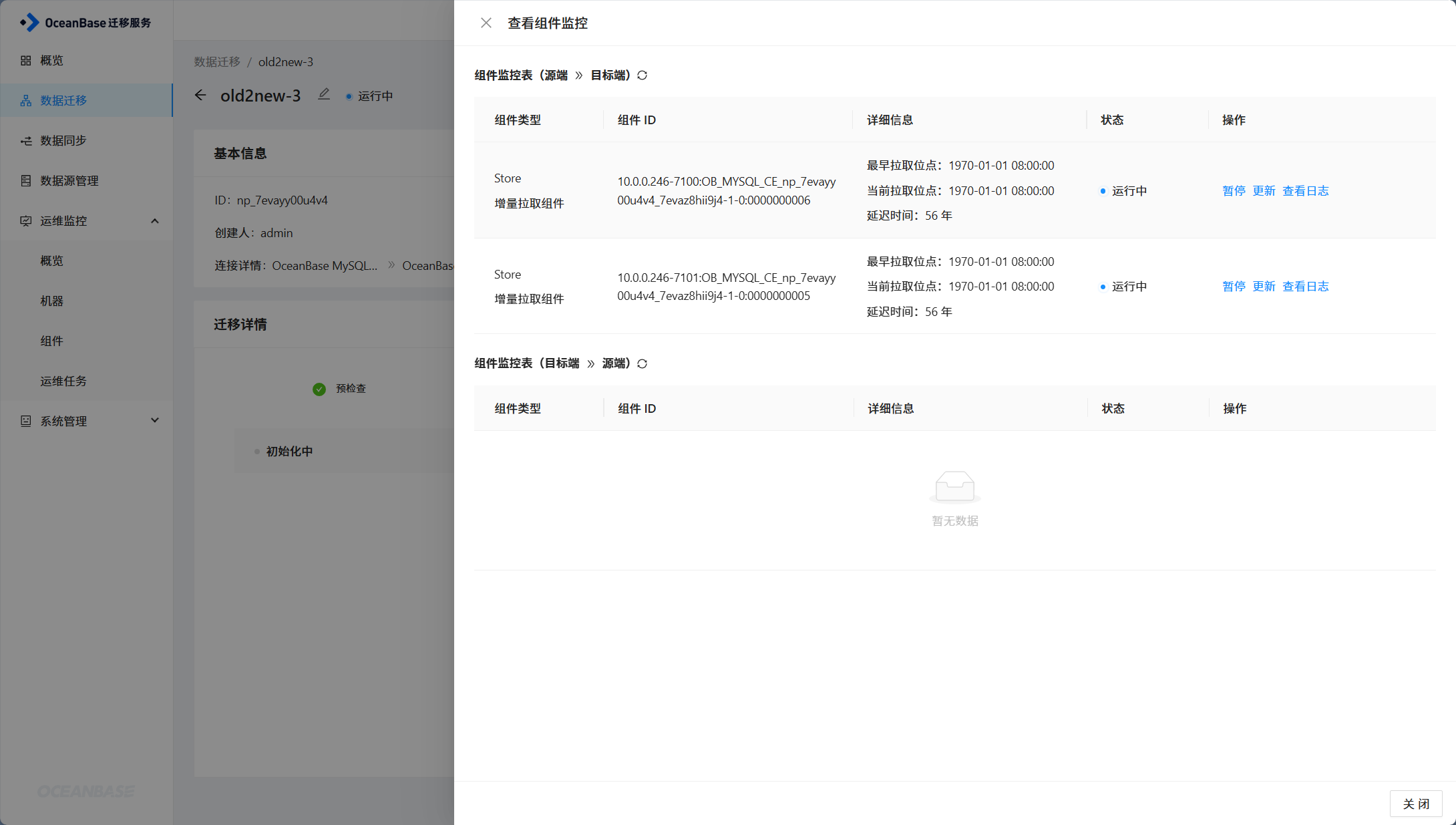 【问题描述】OB到OB的数据迁移,表结构迁移结束后,全量迁移一直处于初始化状态,重建新的任务只做全量迁移也是如此现象;