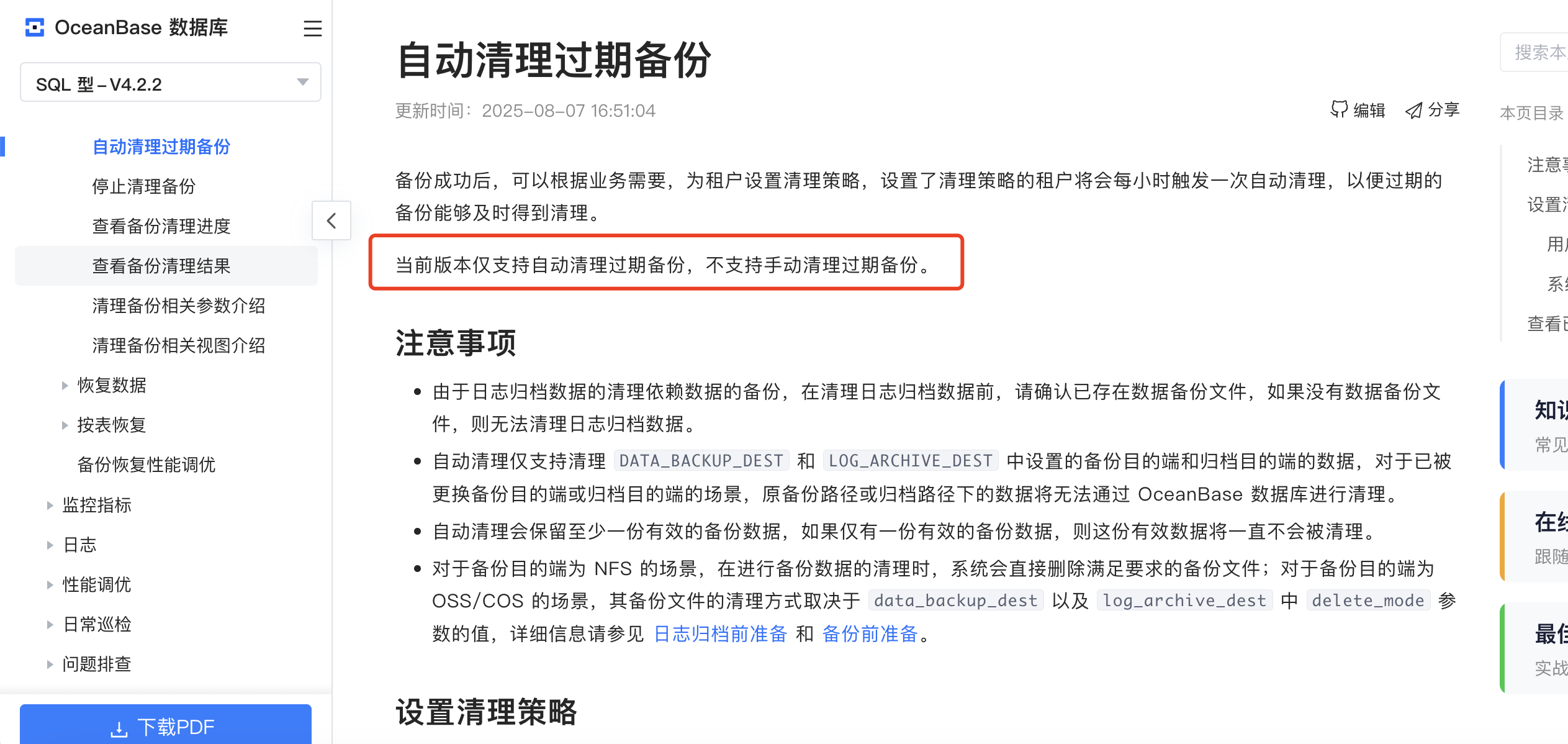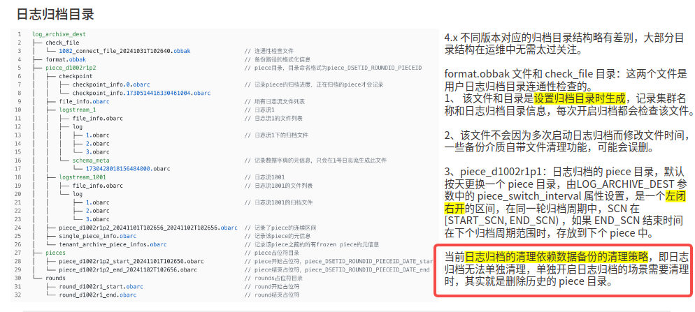 2、是否可用高版本的这个方式呢?“将自动清理策略配置为 log_only 的方式来实现日志归档 Piece 的清理。”