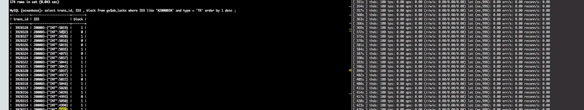 SELECT trace_id,sql_id,tx_id,ret_code,trans_status FROM GV$OB_SQL_AUDIT