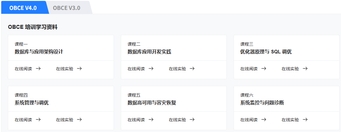 OBCE V4 来了 https://www.oceanbase.com/training/obce
