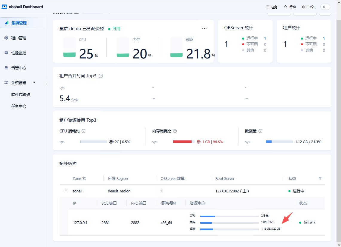 1.Centos安装完单机版16核16G硬件但是:http://192.168.1.83:2886/overview,在这里显示数据库只用了2核和5G内存,这个可以调整吗?