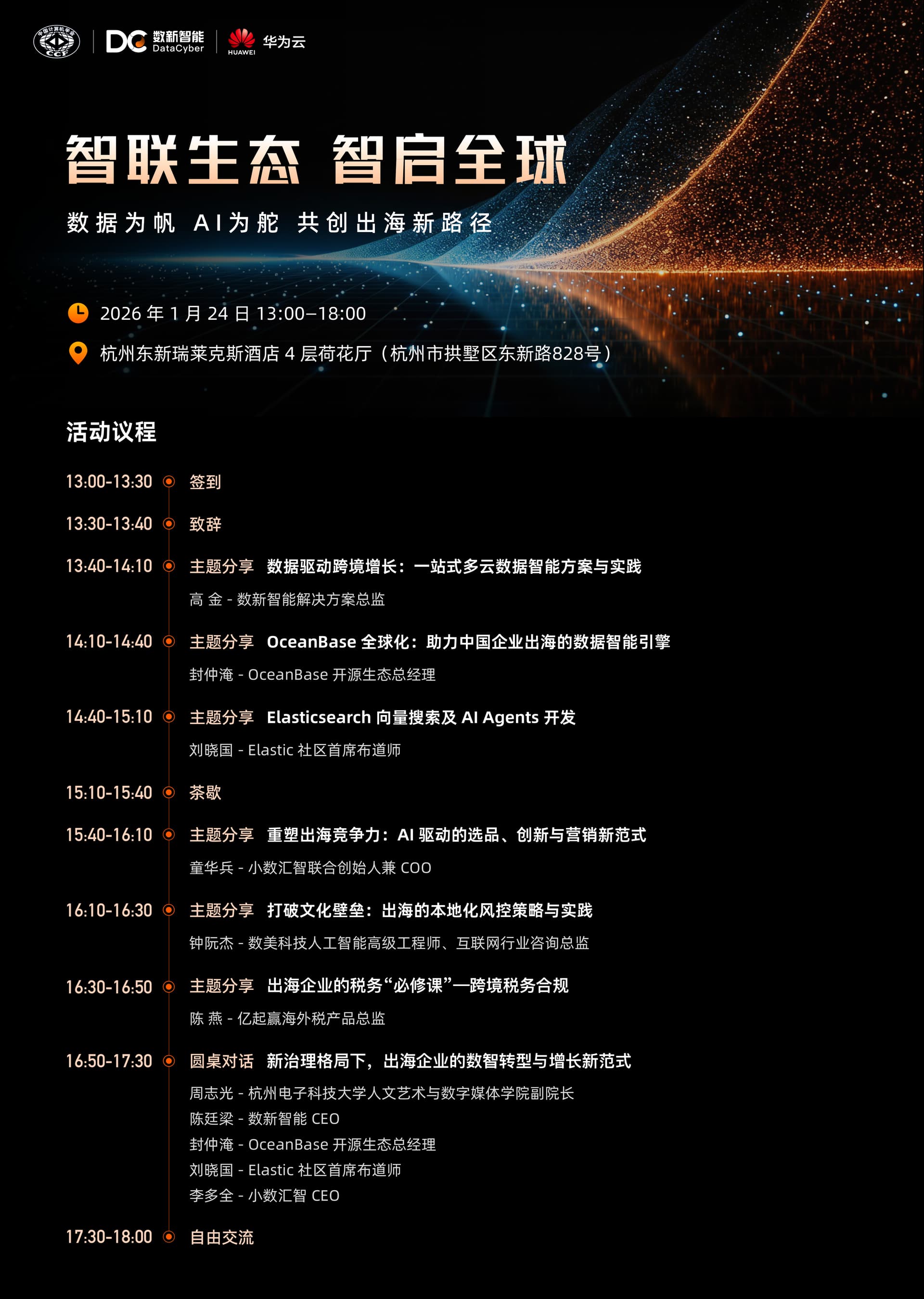 - 聆听来自数新智能、OceanBase、Elastic、小数汇智、数美科技、亿起赢等企业的实战案例
