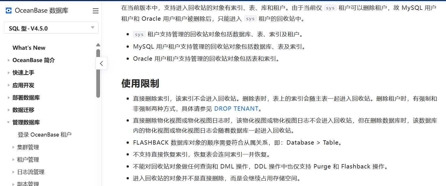 在OceanBase数据库中,对以下哪些对象执行DROP操作后,对象会进入回收站?