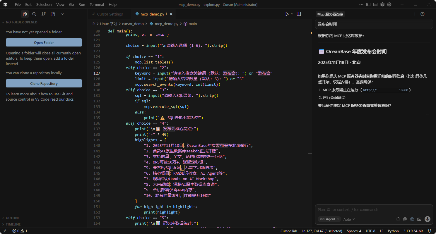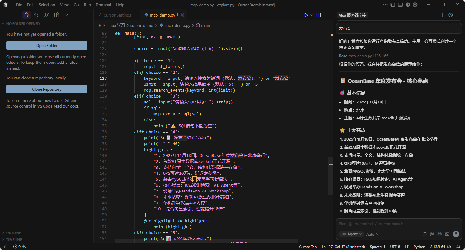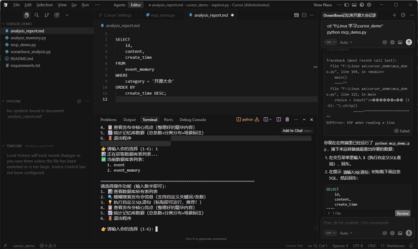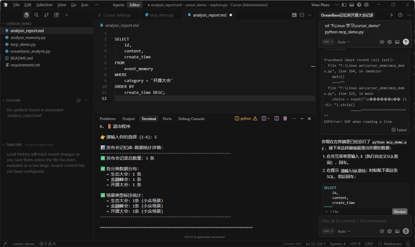 🎯 Cursor+OceanBase MCP 客户端【修复完整版】- 发布会记忆库
