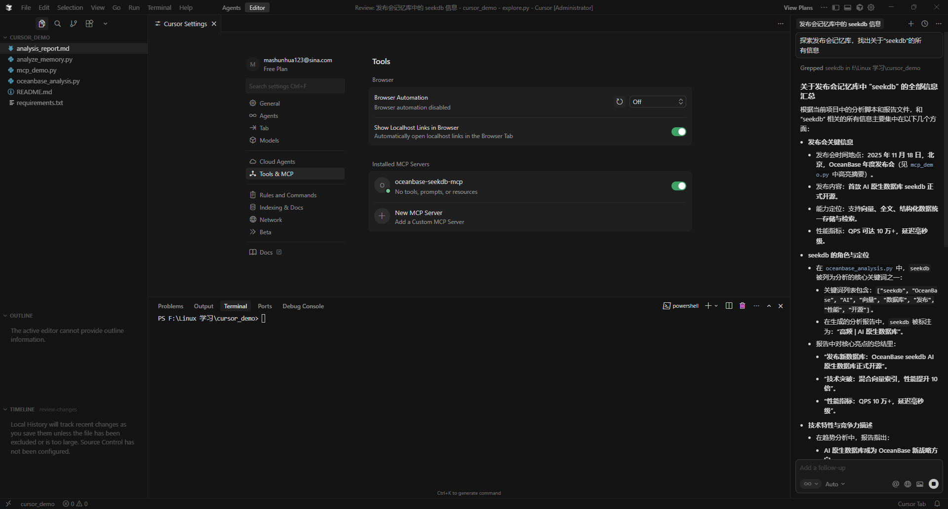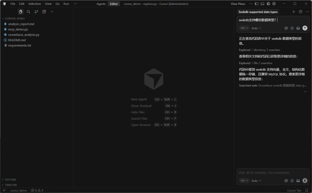 Cursor Agent + OceanBase MCP + SeekDB:零编码玩转AI原生数据库的Vibe范式实战
