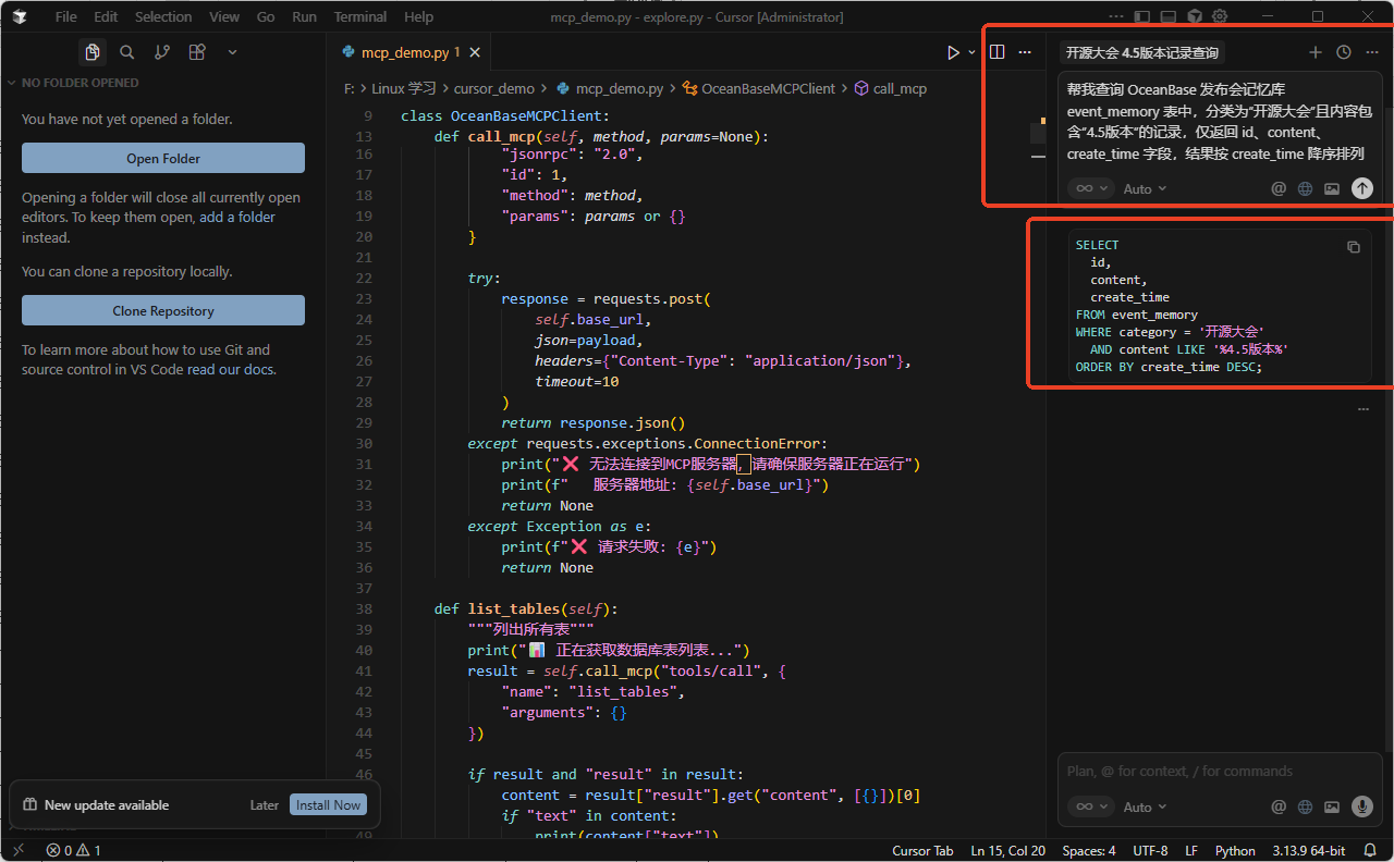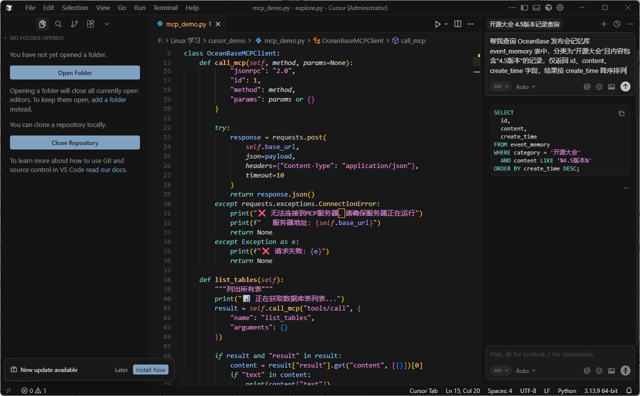 6.1 Cursor + OceanBase MCP 实战全流程指南