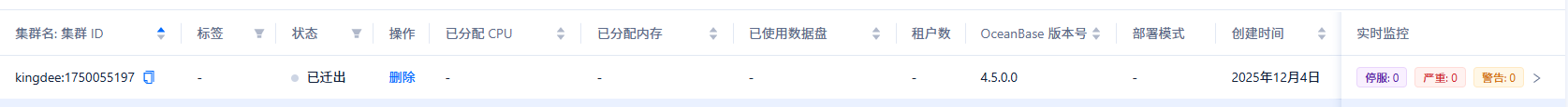 |100|OB|ea833e33-e86a-4e13-b882-d37bf8279e4f|clusterName=kingdee|tenantName=sys|username=ocp_monitor|password=eaxVRELm0AxZheXZxrIXRXg5jjhQIOBPZxP9PndPFbs=|