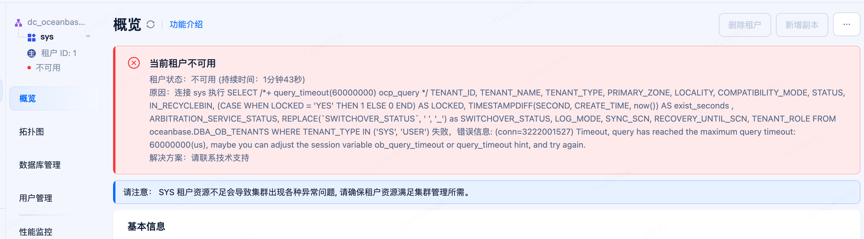 这种该怎么排查呢,为啥会引起sys租户异常呢,然后就会报业务租户异常