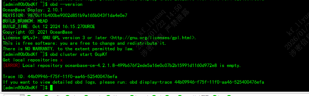 检查 OBD 版本 :确保您使用的 OBD 版本与 OCP 版本兼容。您可以参考 常见问题 中的 如何升级 obd 一节来确保 OBD 版本正确。