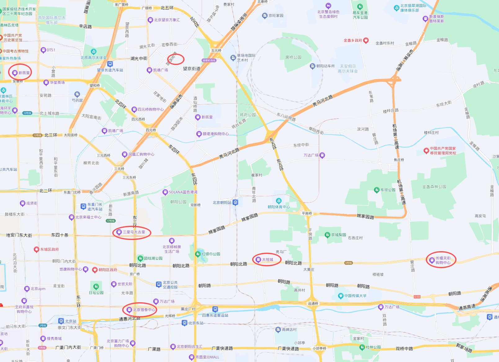 -- 朝阳大悦城:边缘商圈+1个大型配套+2个竞品+主干道501-1000米(空间分极低,租金中低)