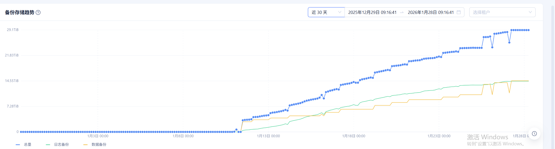 近期业务量没有大的变化呢,我的备份空间由30T,且我的备份策略是每周一次全量,其他的都是增量,我的数据空间正常是3T多一点,有两个问题需要您帮忙排查: