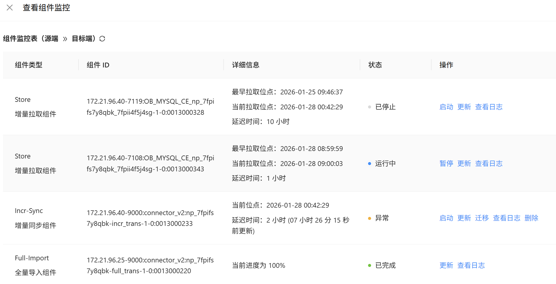1、昨晚大约是凌晨 0:41,由于OMS的服务器磁盘空间满导致增量数据迁移停止;