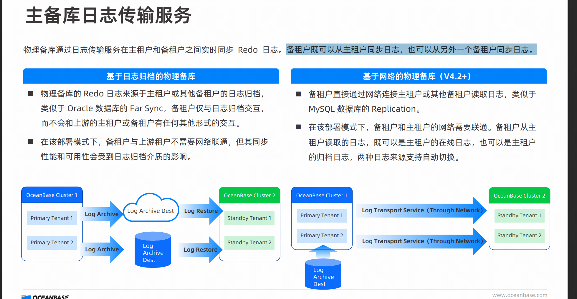 D 主租户与不感知备租户, 备租户主动拉取主租户的活跃日志或归档来同步数据
