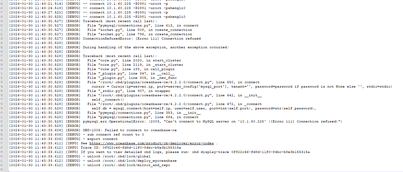 obd版本是多少,看着是ob启动异常导致连接失败了。