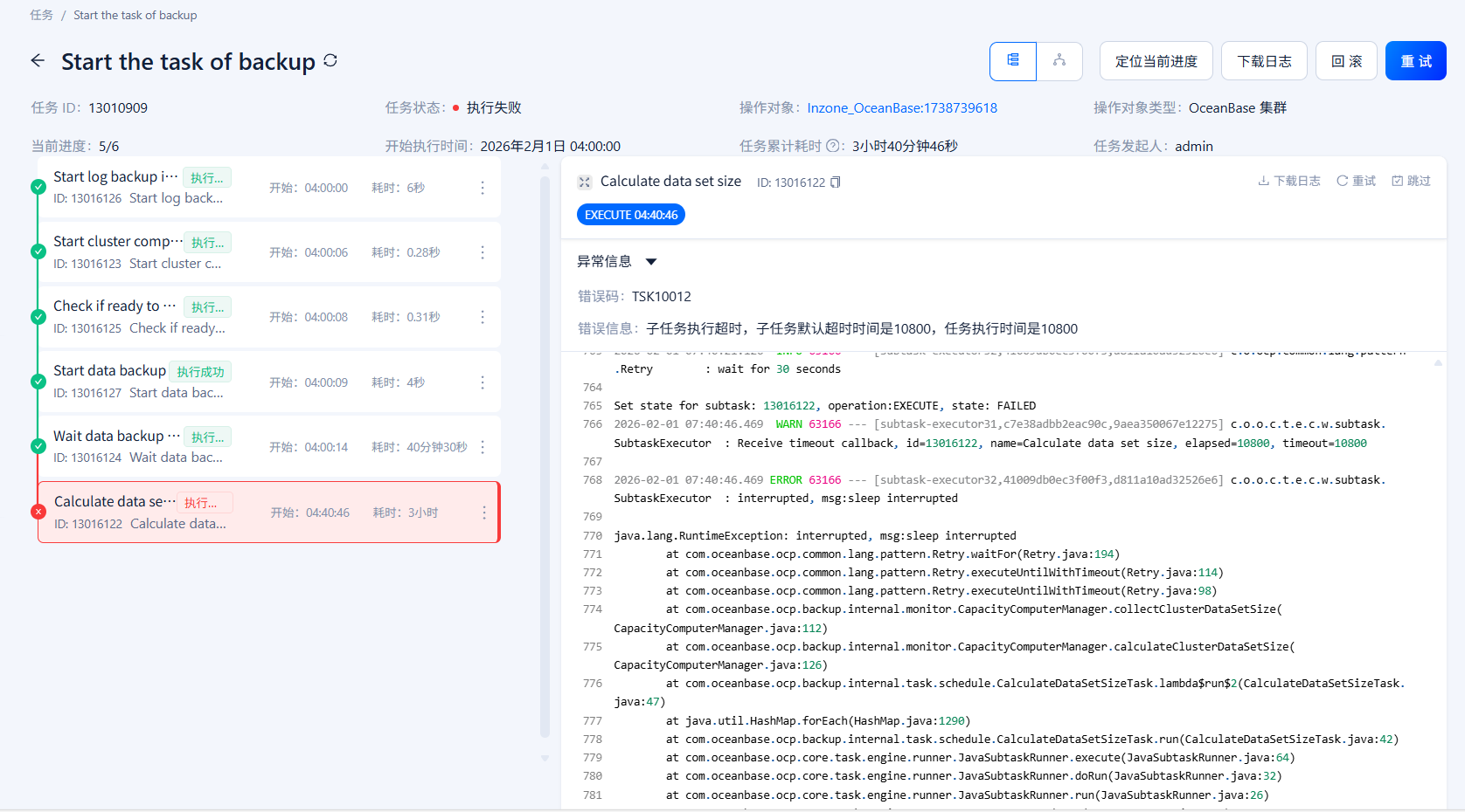 【问题描述】在执行备份的过程中,前面的步骤都执行成功了,但最后一步Calculate data set size执行超时。备份目录使用的NFS。