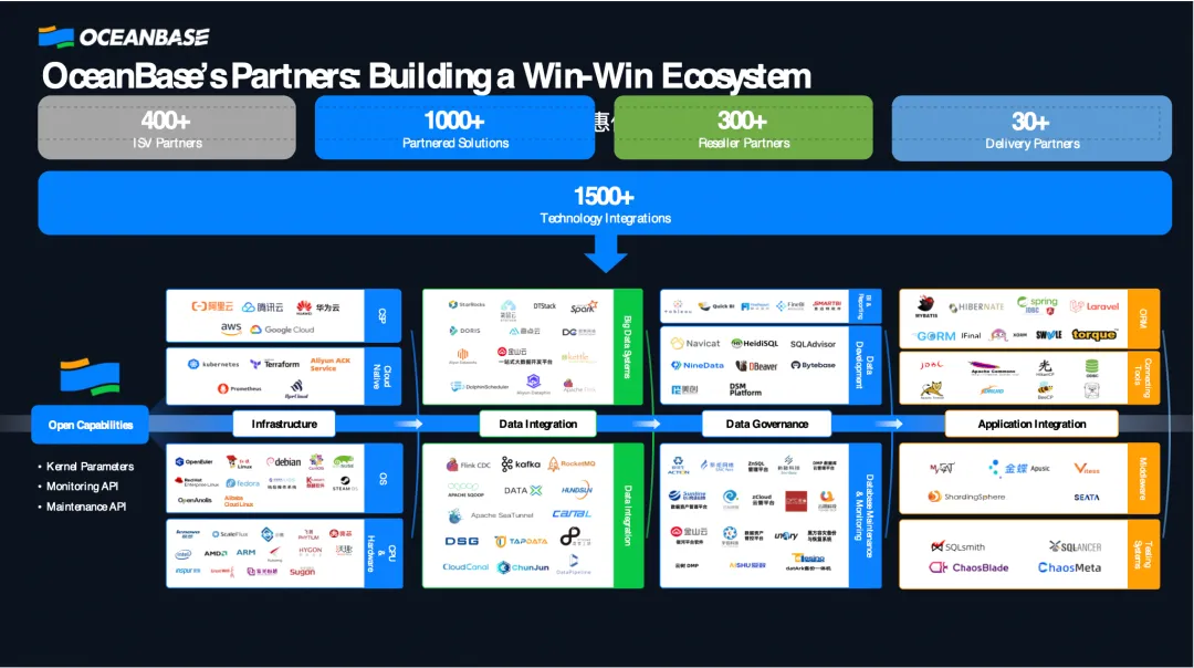 截至目前,OceanBase 已联合 400 余家独立软件开发商,共同打造超过 1000 项联合解决方案,拥有 300 多家经销商伙伴及 30 余家交付合作伙伴,累计完成技术集成 1600 余项,持续赋能千行百业的数字化转型。