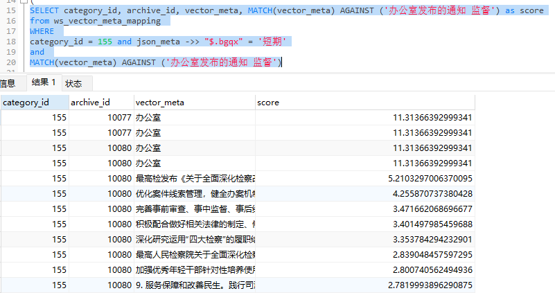我测试了一下全文检索,使用IN NATURAL LANGUAGE MODE进行模糊匹配时,发现相似度评分都挺高,是没有做归一化处理吗?我也没有找到对评分归一化的参数
